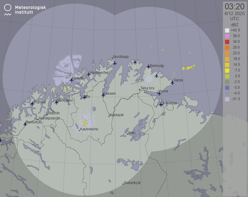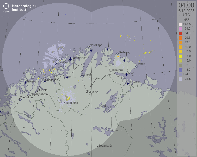 Available products for area "finnmark" with data type "reflectivity"