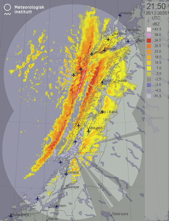 Available products for area "nordland" with data type "reflectivity"