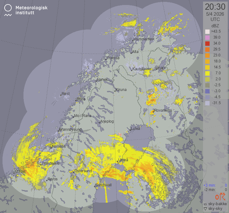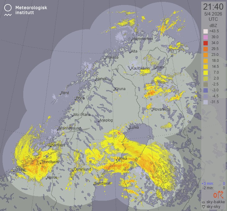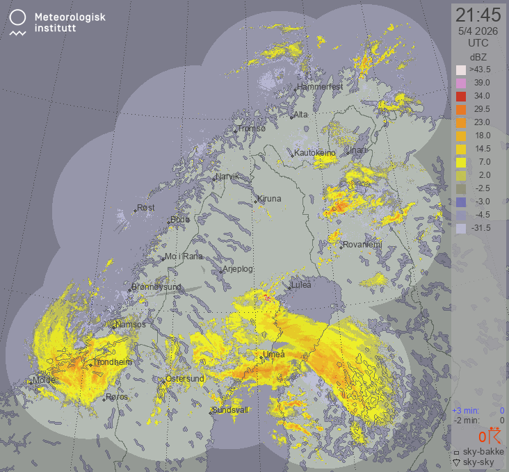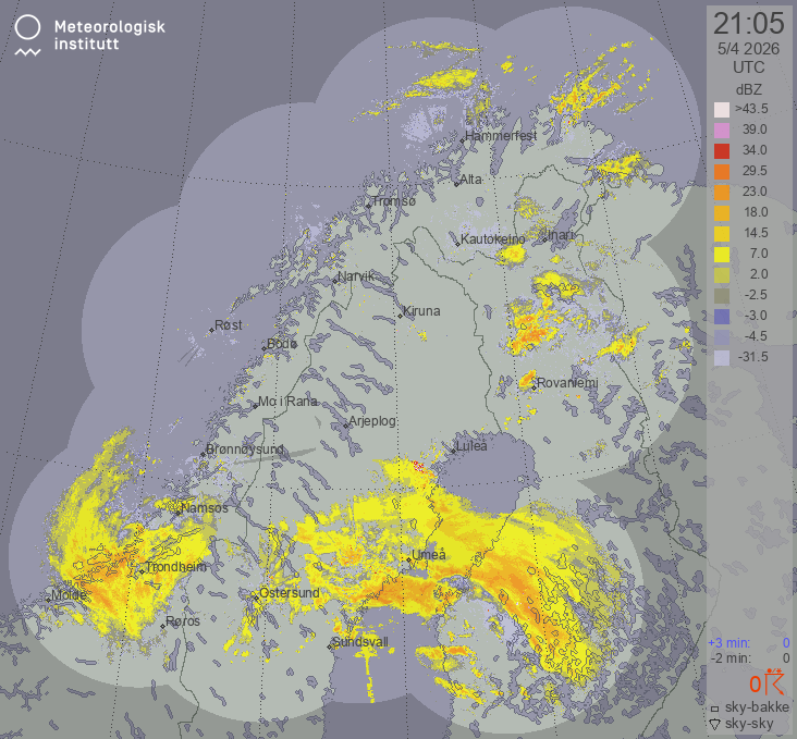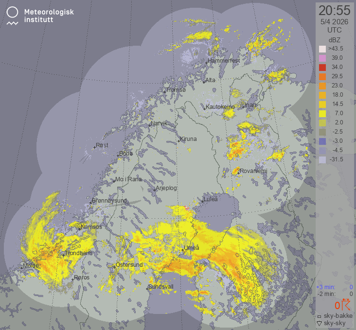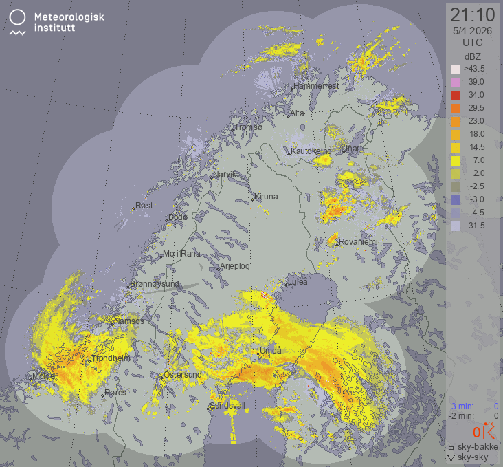 Available products for area "nordskandinavia" with data type "lx-reflectivity"