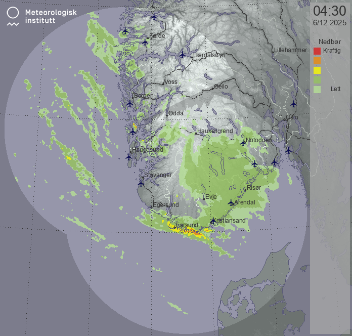 Available products for area "sorvestnorge" with data type "5level-reflectivity"